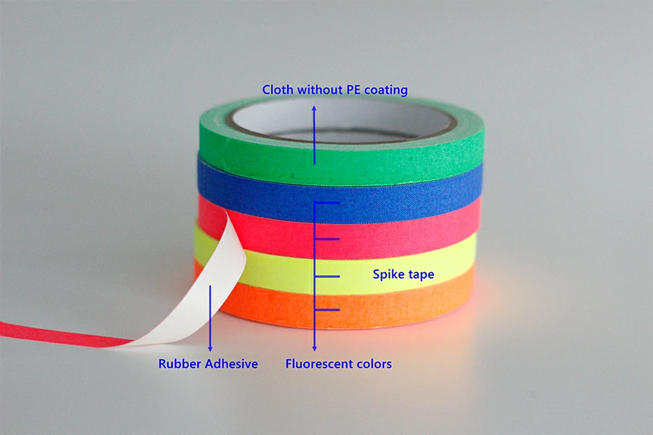 The fluorescent colors of spike tape make it easier to see in low-light conditions, which is especially important on a stage or set where lighting can be controlled and varied. The bright colors of fluorescent spike tape can help actors and technicians quickly locate their marks, props, or equipment, and can also help prevent accidents by making potential hazards more visible.